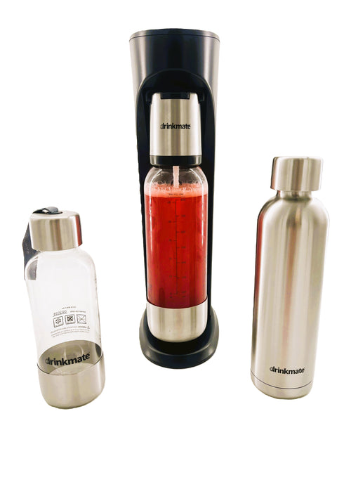 Drinkmate OmniFizz Stainless Bundle - OmniFizz Sparkling Water and Soda Maker with a 0.7L SS bottle, SS Fizz Infuser, 1L and 0.5L SS / PET bottles - (CO2 Cylinder not included)