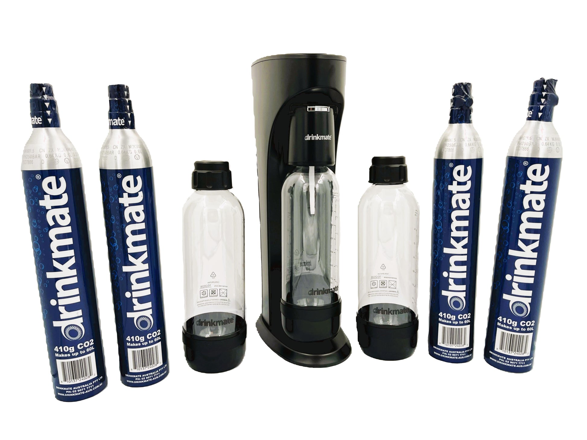 Drinkmate OmniFizz Value Pack - Sparkling Water and Soda Maker, 1L PET Bottles Twin Pack and CO2 Cylinder 4 Pack.